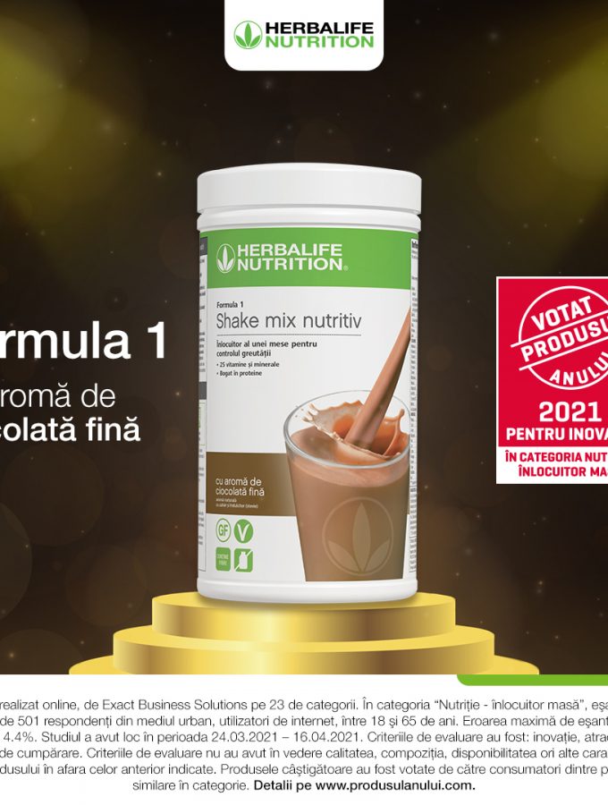 Shake-ul înlocuitor de masă Herbalife Nutrition Formula 1 cu aromă de ciocolată fină a câștigat premiul „Votat Produsul Anului 2021”